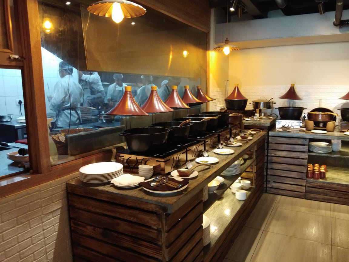 Lavishly spaced, each table setting in the restaurant is well-spaced out with an artistic spirit that makes the diners feel at home, and the space, hip. To warm the senses, the restaurant lounge offers a cosier look with multi—colour drapes and weaves that gives it an ethereal look, for a truly transcendental experience.