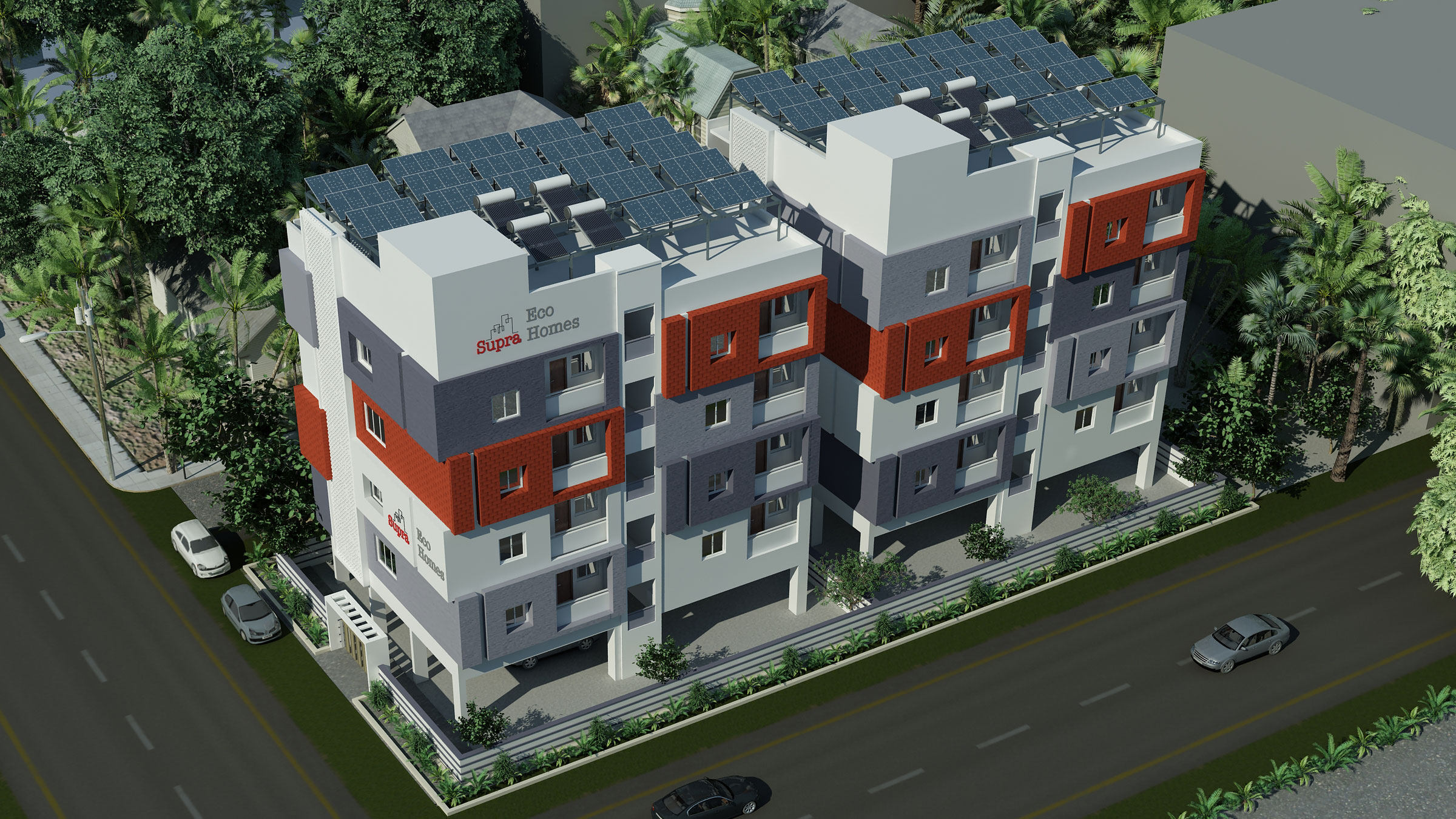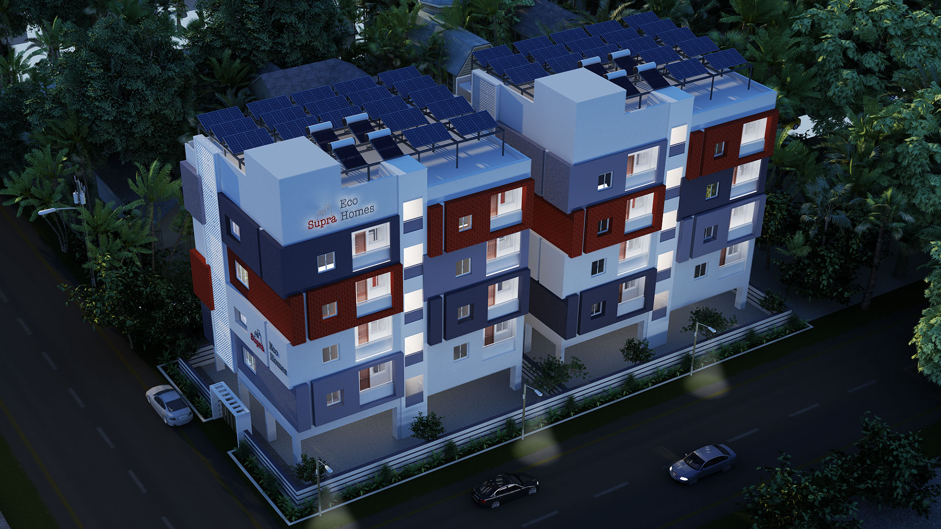 Supra Eco Homes is a green building powered by Solar Power as primary source of electricity.