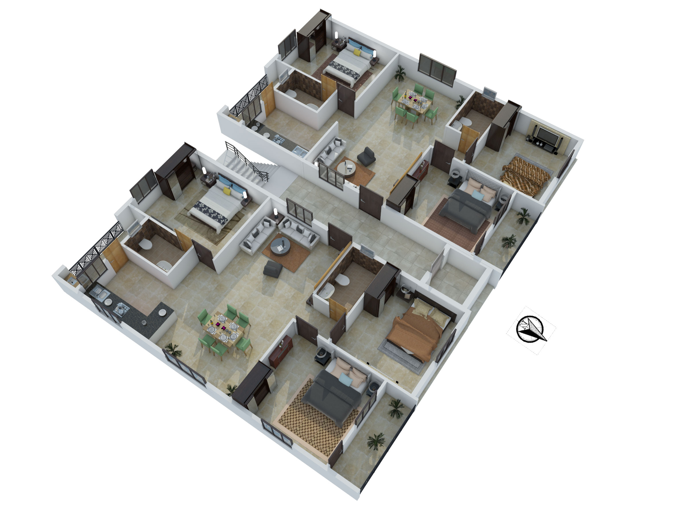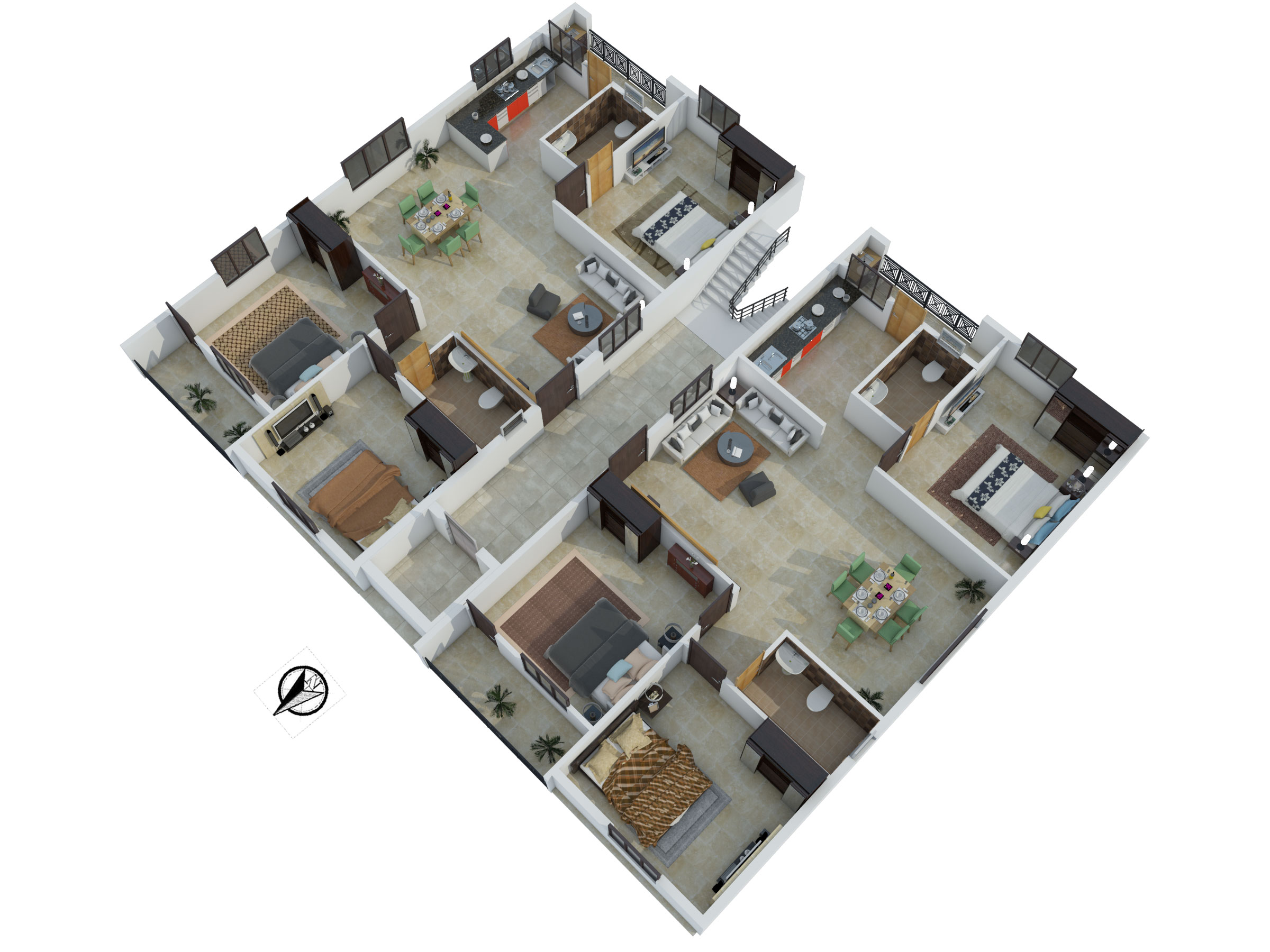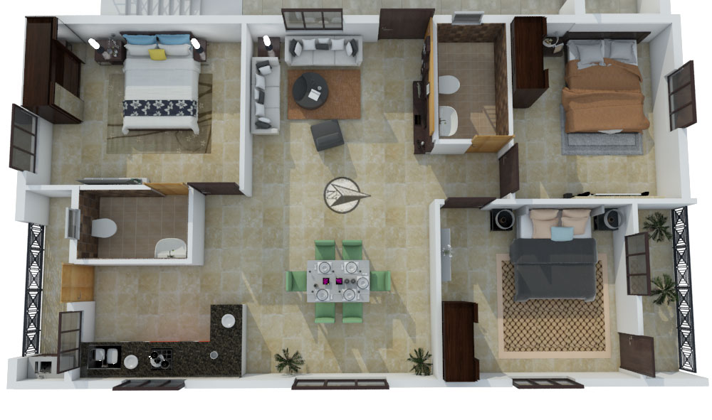 - Electronics: LED Lights, Power Saving Fans, One AC for each bedroom