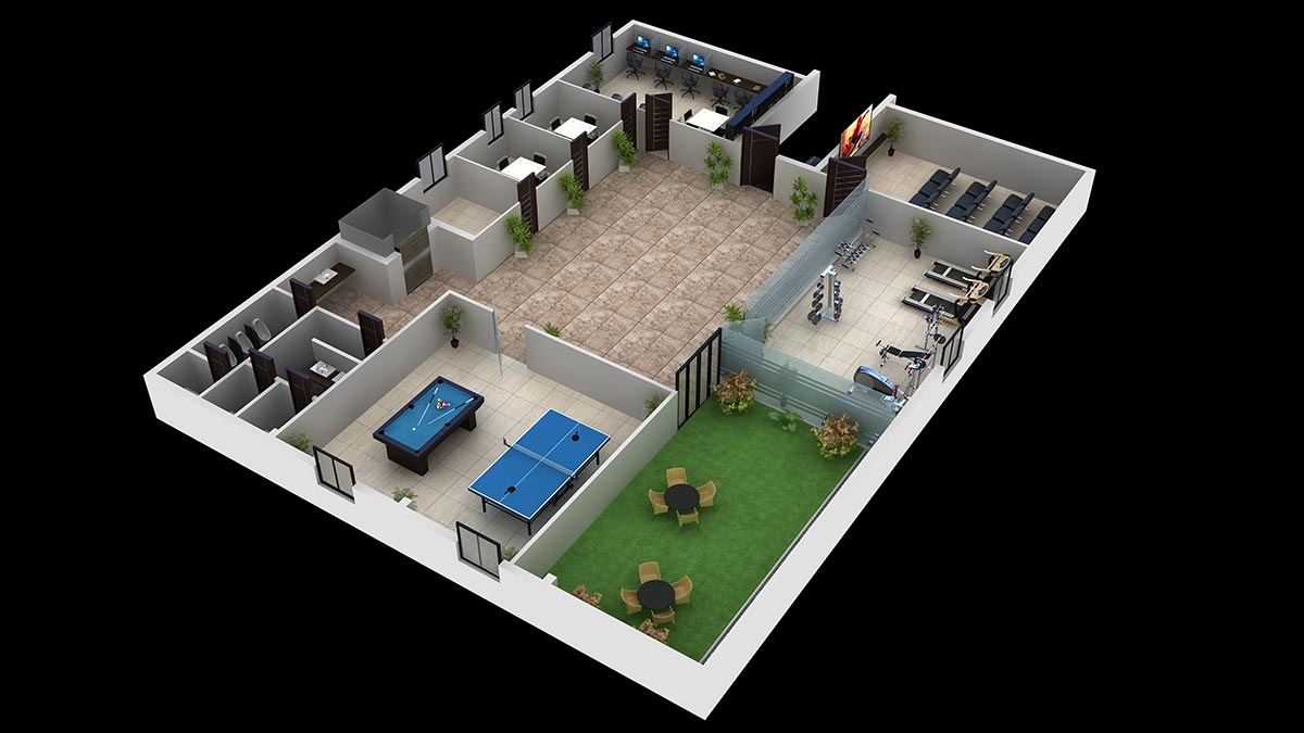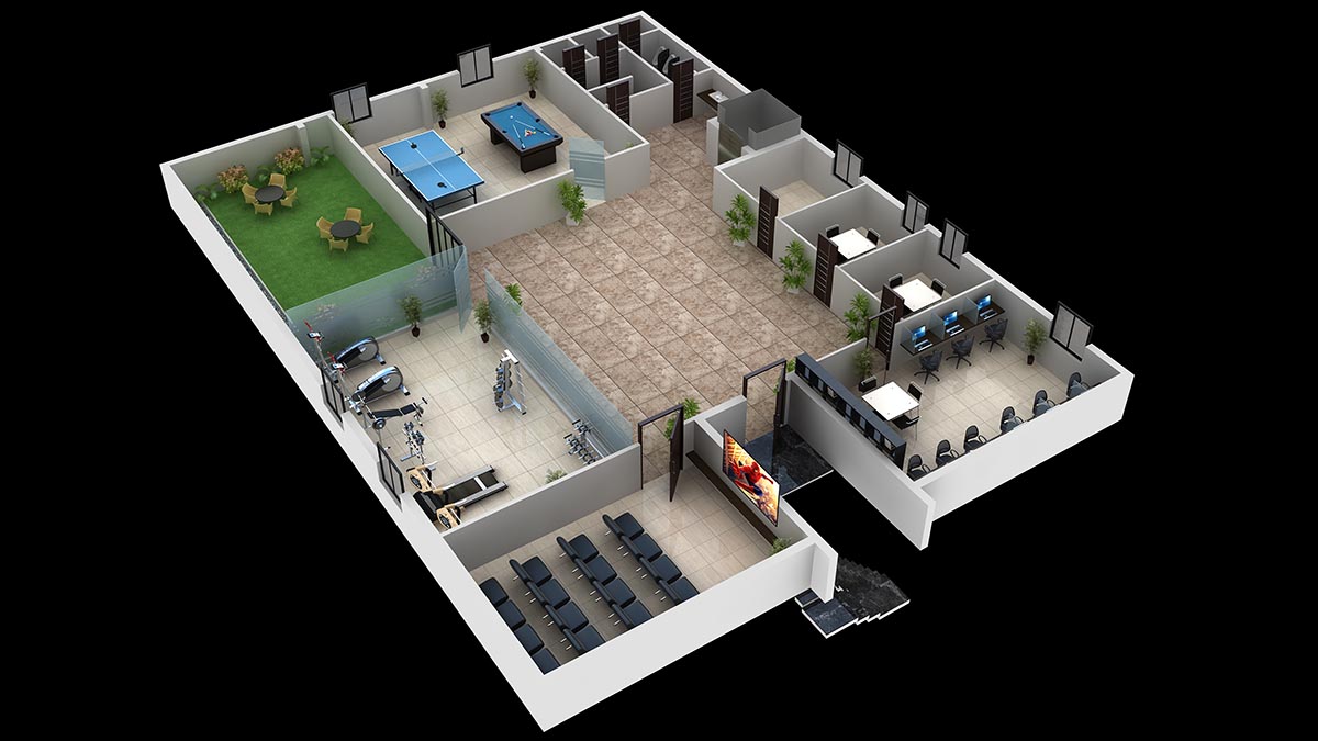 - Gym, Home theatre, Work stations, Indoor games, Library, Conference rooms, Terrace garden, Wi-Fi ready